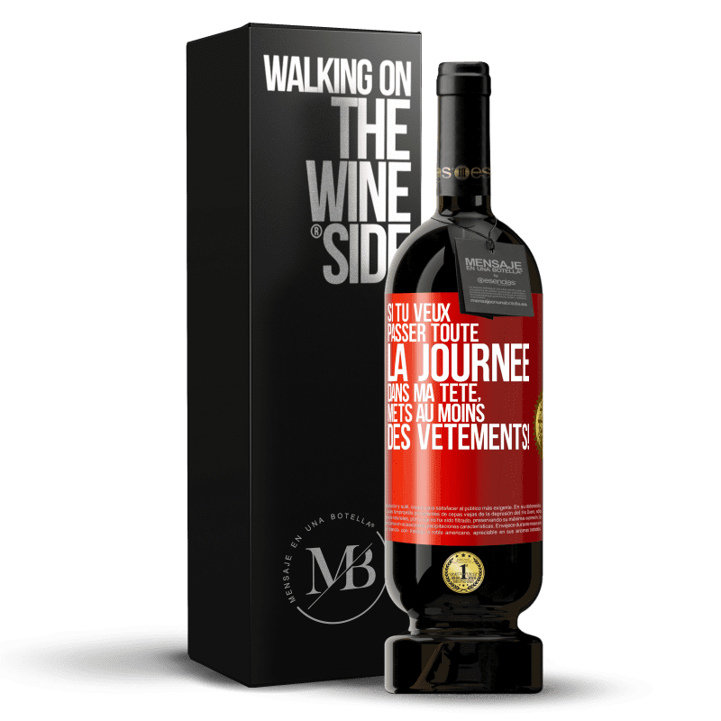 Message dans une Bouteille. Bouteille de vin avec étiquette personnalisée. Message: "Si tu veux passer toute la journée dans ma tête, mets au moins des vêtements!". Étiquette Rouge. Étiquette personnalisable. |