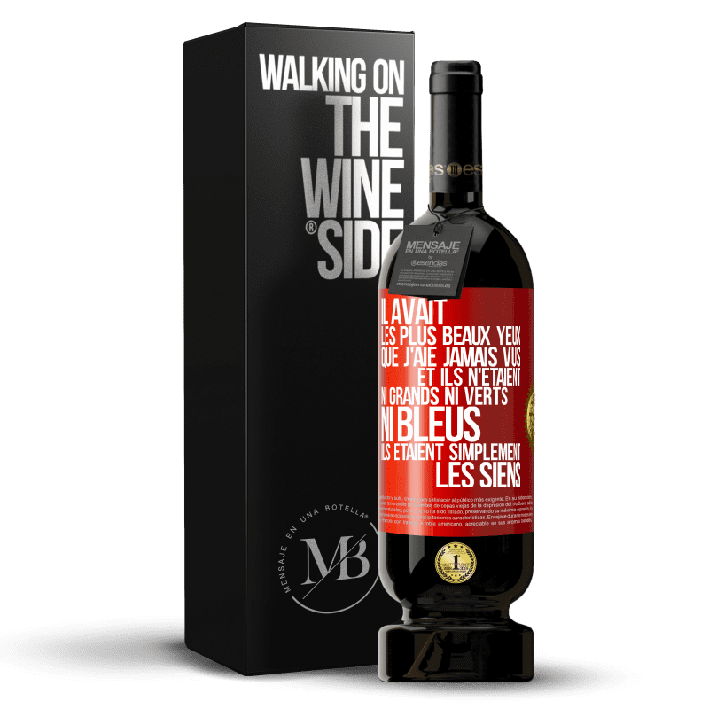 Message dans une Bouteille. Bouteille de vin avec étiquette personnalisée. Message: "Il avait les plus beaux yeux que j'aie jamais vus. Et ils n'étaient ni grands ni verts, ni bleus. Ils étaient simplement les sie". Étiquette Rouge. Étiquette personnalisable. |