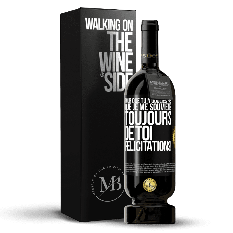 Message dans une Bouteille. Bouteille de vin avec étiquette personnalisée. Message: "Pour que tu n'oublies pas que je me souviens toujours de toi. Félicitations!". Étiquette Noire. Étiquette personnalisable. |