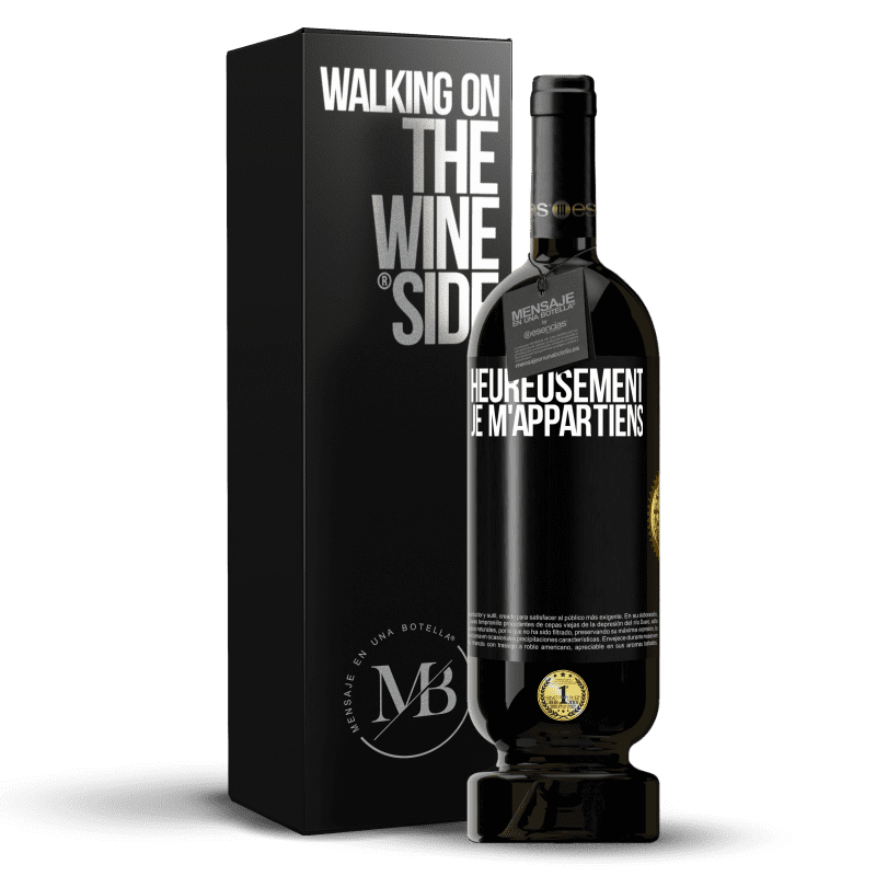 Message dans une Bouteille. Bouteille de vin avec étiquette personnalisée. Message: "Heureusement, je m'appartiens". Étiquette Noire. Étiquette personnalisable. |