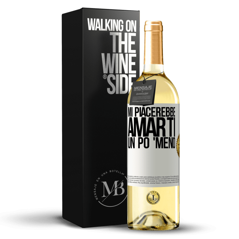 Messaggio in una Bottiglia. Bottiglia di vino con etichetta personalizzata. Messaggio: "Mi piacerebbe amarti un po 'meno". Etichetta Bianca. Etichetta personalizzabile. |