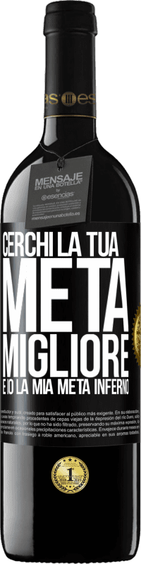 Messaggio in una Bottiglia. Bottiglia di vino con etichetta personalizzata. Messaggio: "Cerchi la tua metà migliore, e io, la mia metà inferno". Etichetta Nera. Etichetta personalizzabile. |