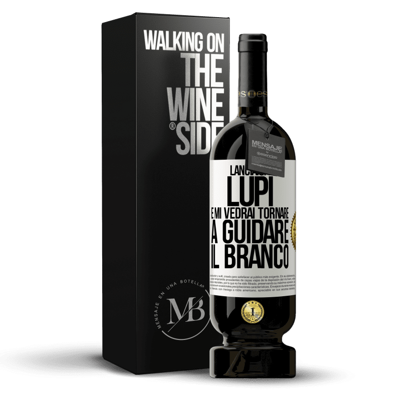 Messaggio in una Bottiglia. Bottiglia di vino con etichetta personalizzata. Messaggio: "Lanciami i lupi e mi vedrai tornare a guidare il branco". Etichetta Bianca. Etichetta personalizzabile. |