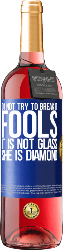 ボトル内のメッセージ. パーソナライズされたラベル付きのワインボトル. メッセージ: "それを壊そうとしないでください、愚か者、それはガラスではありません。彼女はダイヤモンドです". 青いタグ. カスタマイズ可能なラベル. |
