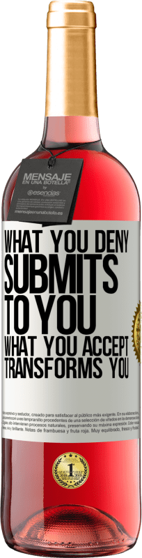 ボトル内のメッセージ. パーソナライズされたラベル付きのワインボトル. メッセージ: "あなたが拒否するものはあなたに提出します。あなたが受け入れるものはあなたを変えます". ホワイトラベル. カスタマイズ可能なラベル. |