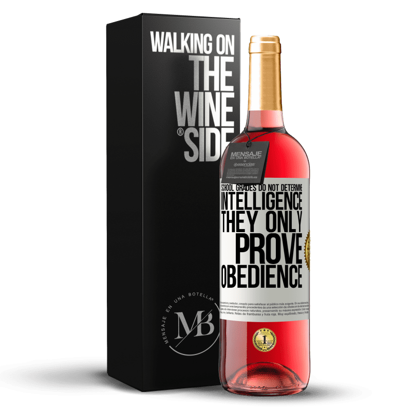 ボトル内のメッセージ. パーソナライズされたラベル付きのワインボトル. メッセージ: "学年は知性を決定しません。彼らはただ従順を証明する". ホワイトラベル. カスタマイズ可能なラベル. |