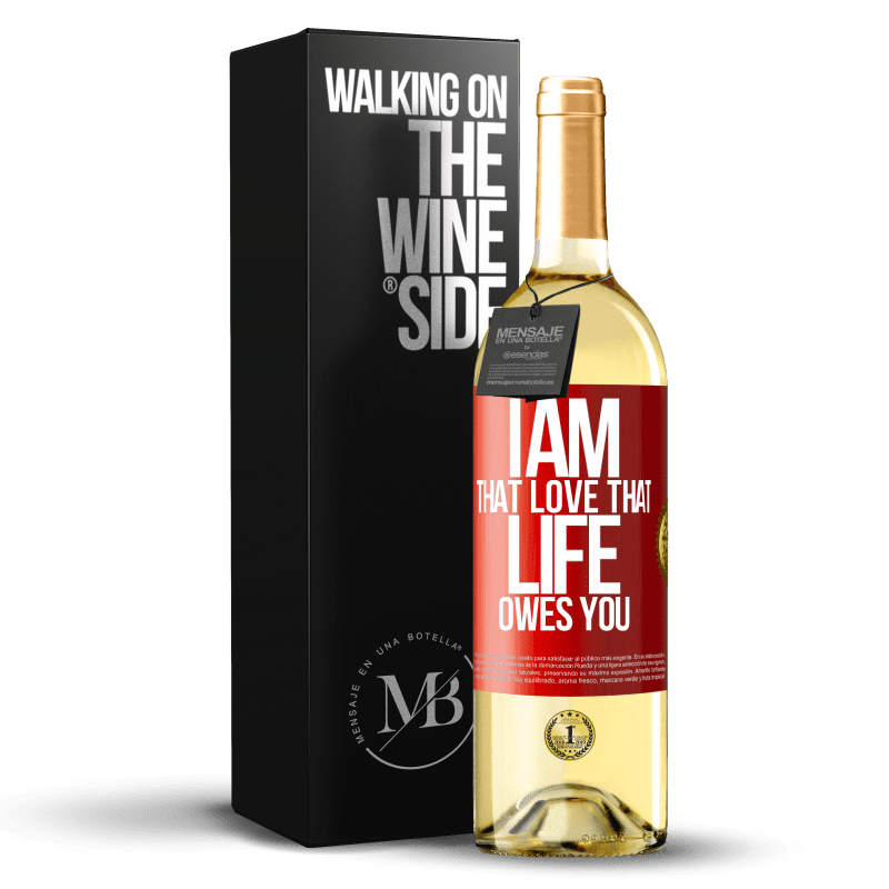 ボトル内のメッセージ. パーソナライズされたラベル付きのワインボトル. メッセージ: "私は人生があなたに負っているその愛です". 赤いタグ. カスタマイズ可能なラベル. |