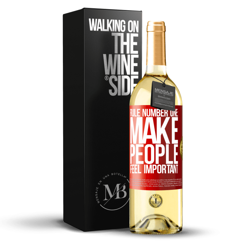 ボトル内のメッセージ. パーソナライズされたラベル付きのワインボトル. メッセージ: "ルールナンバー1:人々に重要性を感じさせる". 赤いタグ. カスタマイズ可能なラベル. |