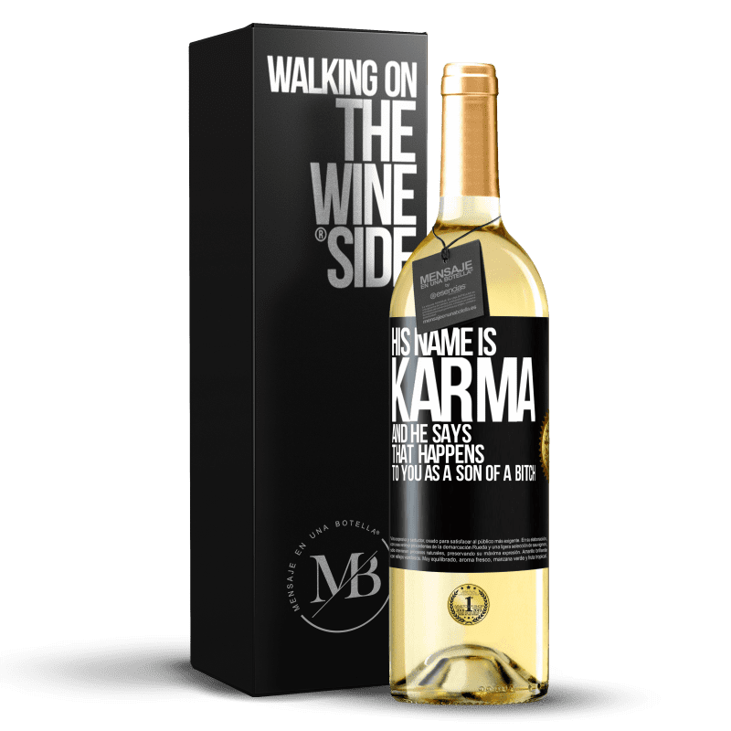 ボトル内のメッセージ. パーソナライズされたラベル付きのワインボトル. メッセージ: "彼の名前はカルマであり、彼は「それは雌犬の息子としてあなたに起こる」と言います". ブラックラベル. カスタマイズ可能なラベル. |