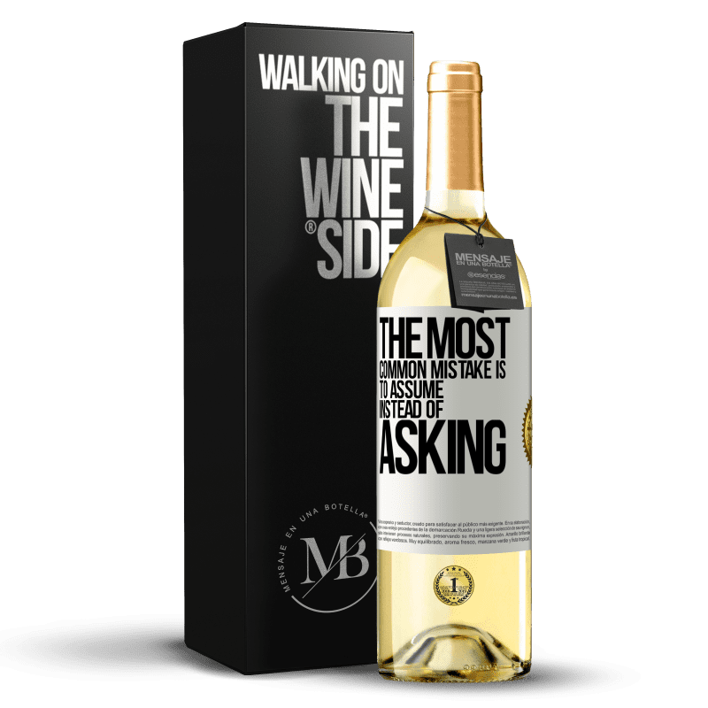 ボトル内のメッセージ. パーソナライズされたラベル付きのワインボトル. メッセージ: "最も一般的な間違いは、尋ねるのではなく仮定することです". ホワイトラベル. カスタマイズ可能なラベル. |