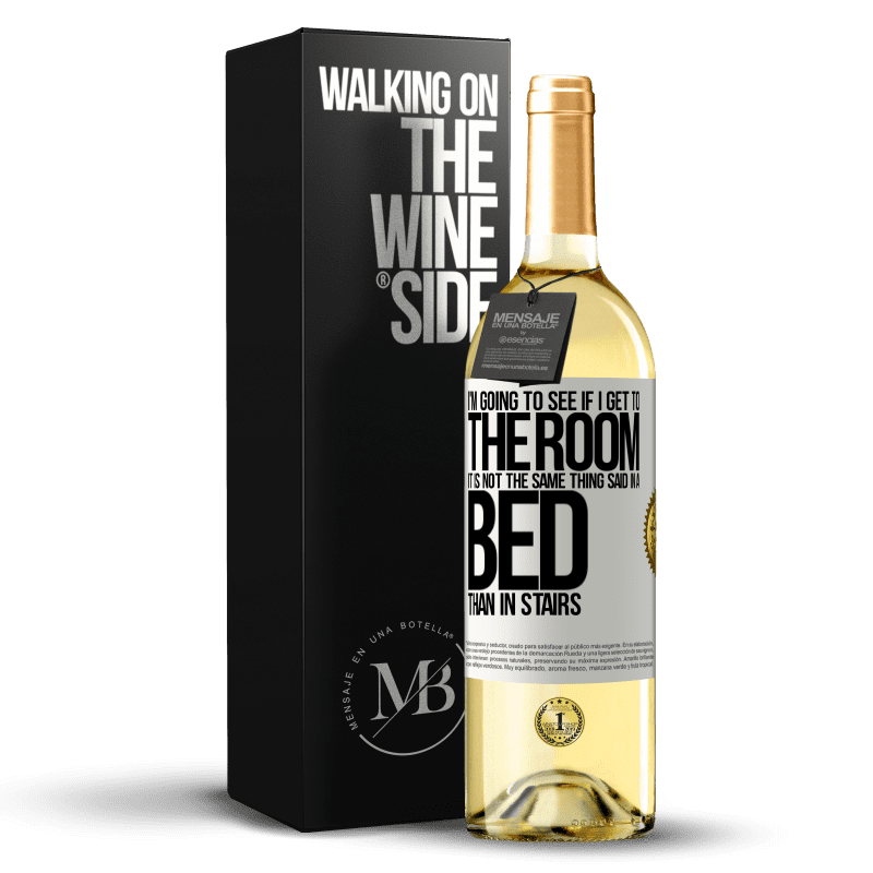 ボトル内のメッセージ. パーソナライズされたラベル付きのワインボトル. メッセージ: "部屋に着くかどうか見ていきます。ベッドでも階段でも同じことではありません". ホワイトラベル. カスタマイズ可能なラベル. |