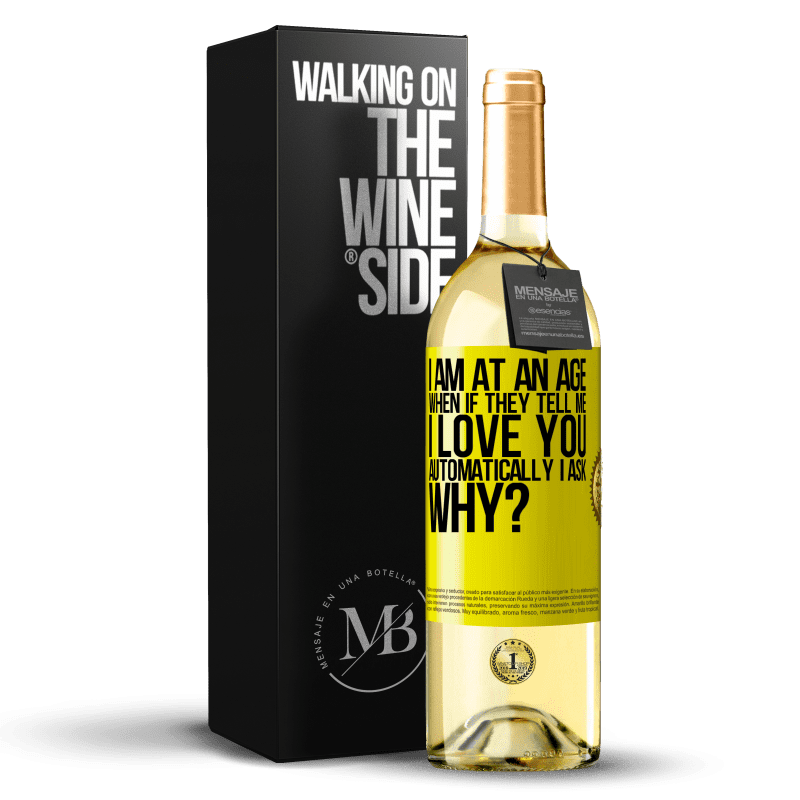 ボトル内のメッセージ. パーソナライズされたラベル付きのワインボトル. メッセージ: "彼らが私に言ったら、私は自動的にあなたを愛しているのですが、なぜですか?". 黄色のラベル. カスタマイズ可能なラベル. |
