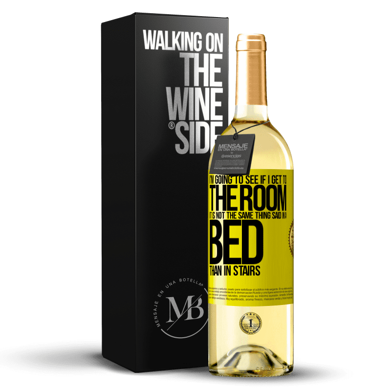 ボトル内のメッセージ. パーソナライズされたラベル付きのワインボトル. メッセージ: "部屋に着くかどうか見ていきます。ベッドでも階段でも同じことではありません". 黄色のラベル. カスタマイズ可能なラベル. |