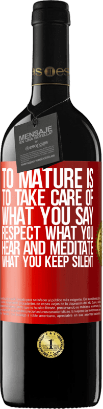 ボトル内のメッセージ. パーソナライズされたラベル付きのワインボトル. メッセージ: "成熟するということは、あなたが言うことを大事にし、聞くことを尊重し、沈黙することを黙想することです". 赤いタグ. カスタマイズ可能なラベル. |