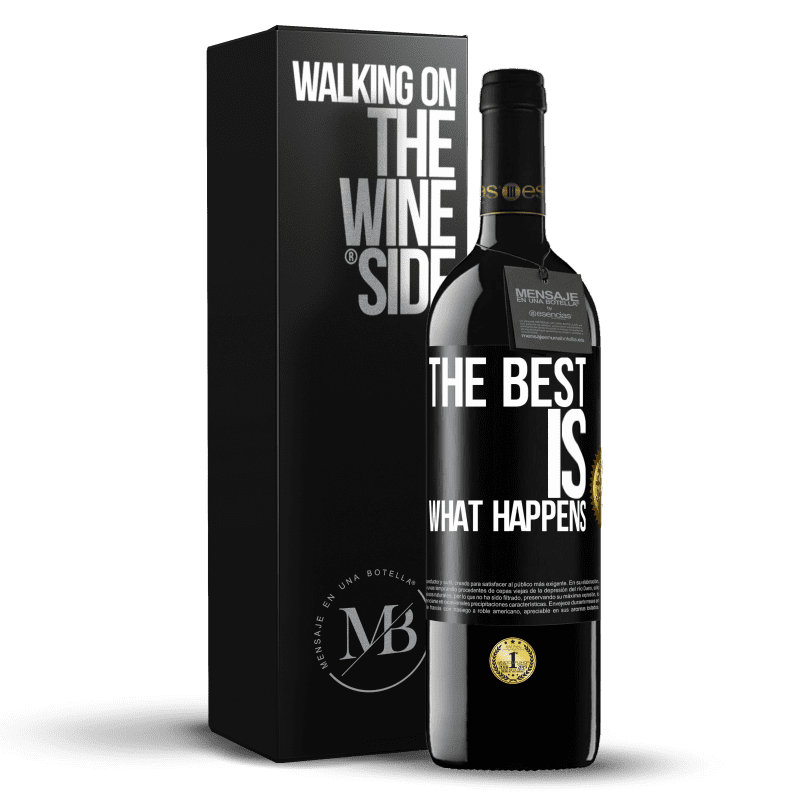 ボトル内のメッセージ. パーソナライズされたラベル付きのワインボトル. メッセージ: "最高は何が起こるか". ブラックラベル. カスタマイズ可能なラベル. |