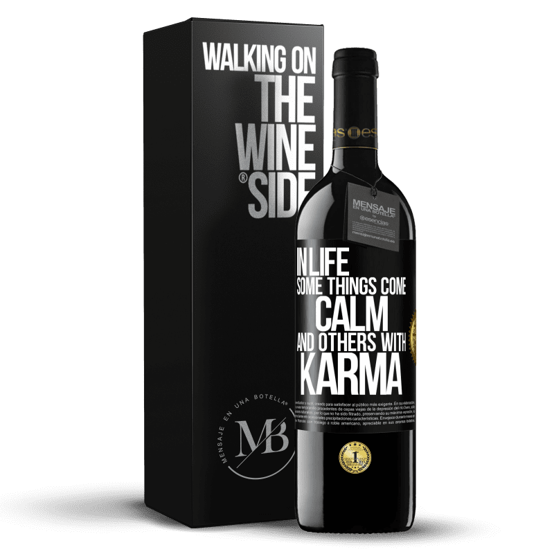 ボトル内のメッセージ. パーソナライズされたラベル付きのワインボトル. メッセージ: "人生の中には落ち着くものもあれば、カルマを伴うものもあります". ブラックラベル. カスタマイズ可能なラベル. |