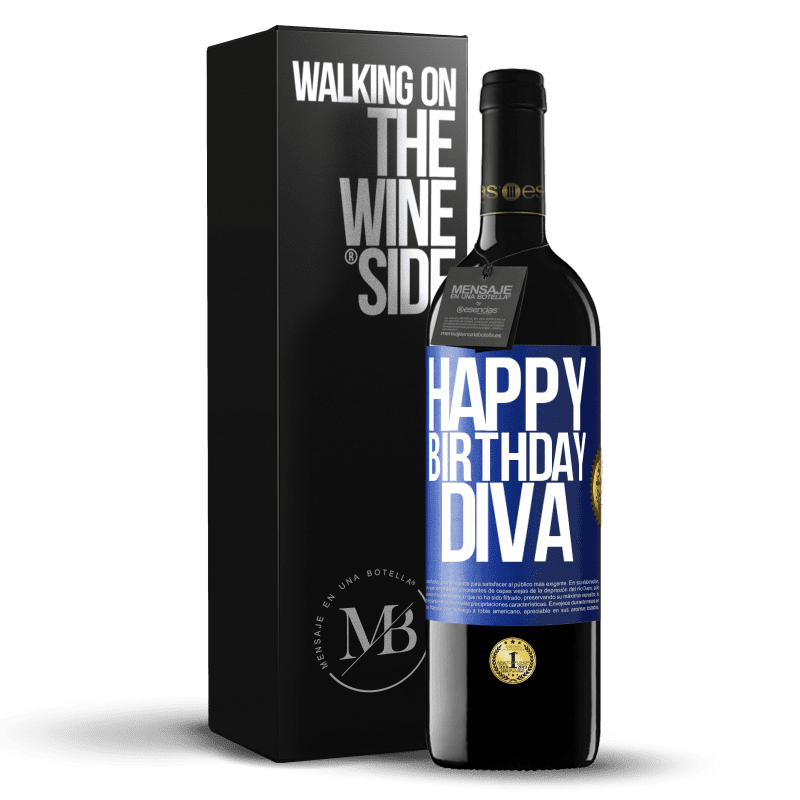 ボトル内のメッセージ. パーソナライズされたラベル付きのワインボトル. メッセージ: "ハッピーバースデーディーバ". 青いタグ. カスタマイズ可能なラベル. |