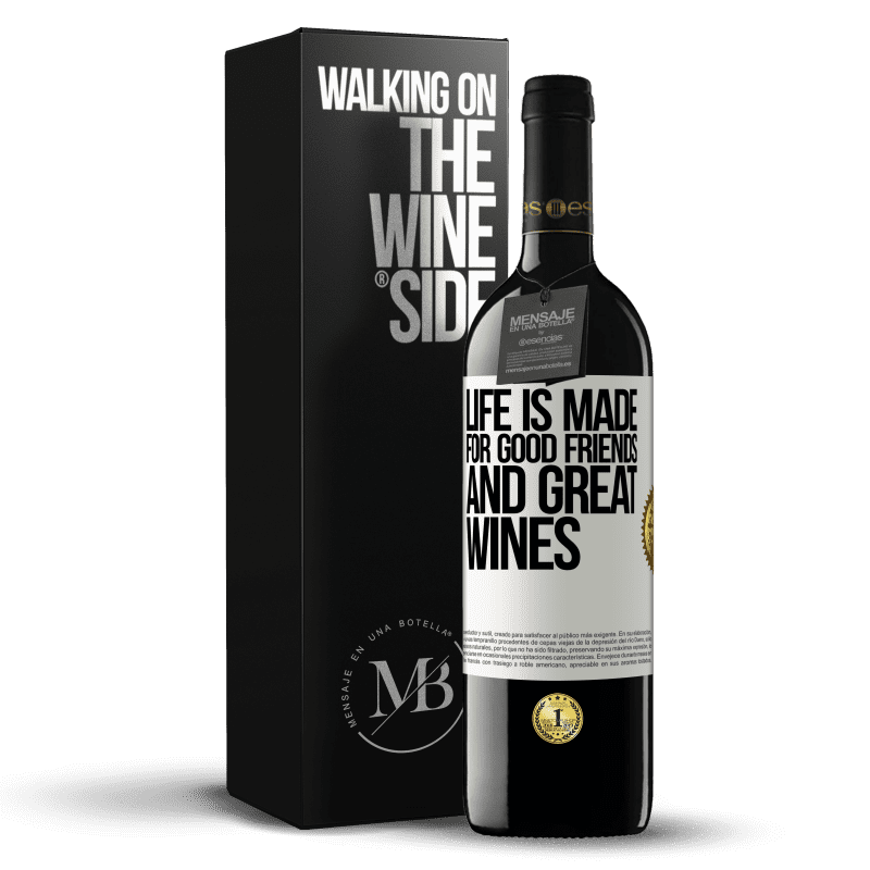 ボトル内のメッセージ. パーソナライズされたラベル付きのワインボトル. メッセージ: "良い友達と素晴らしいワインのために人生が作られます". ホワイトラベル. カスタマイズ可能なラベル. |