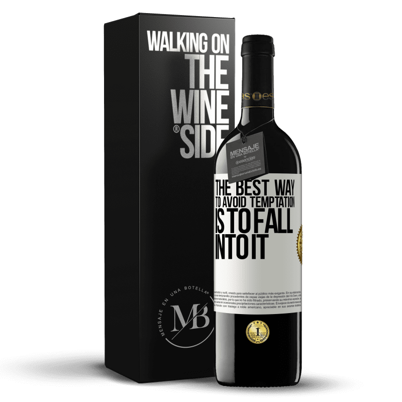 ボトル内のメッセージ. パーソナライズされたラベル付きのワインボトル. メッセージ: "誘惑を避ける最善の方法はそれに誘われることです". ホワイトラベル. カスタマイズ可能なラベル. |