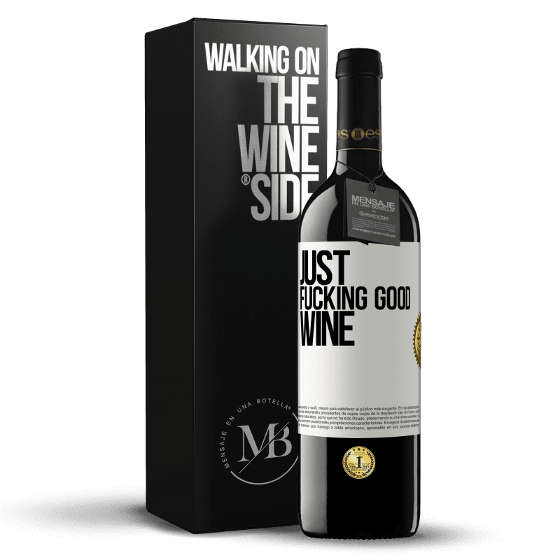 ボトル内のメッセージ. パーソナライズされたラベル付きのワインボトル. メッセージ: "Just fucking good wine". ホワイトラベル. カスタマイズ可能なラベル. |