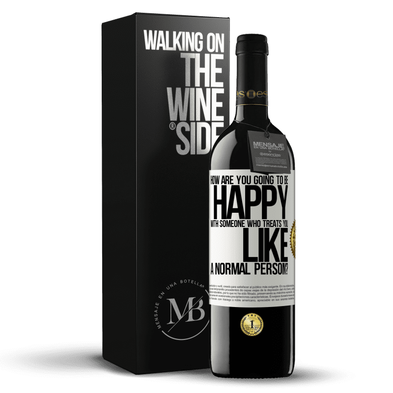 ボトル内のメッセージ. パーソナライズされたラベル付きのワインボトル. メッセージ: "あなたを普通の人のように扱う誰かにどのように幸せになりますか?". ホワイトラベル. カスタマイズ可能なラベル. |