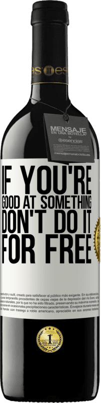 ボトル内のメッセージ. パーソナライズされたラベル付きのワインボトル. メッセージ: "何かが得意であれば、無料でやらないでください". ホワイトラベル. カスタマイズ可能なラベル. |