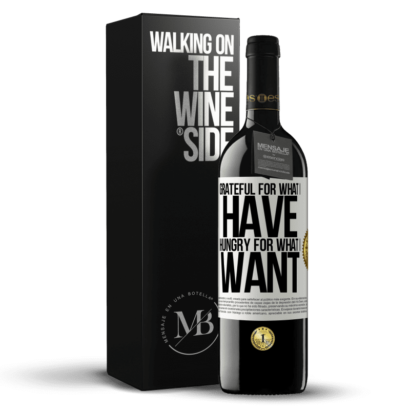 ボトル内のメッセージ. パーソナライズされたラベル付きのワインボトル. メッセージ: "持っているものに感謝し、欲しいものに飢えている". ホワイトラベル. カスタマイズ可能なラベル. |