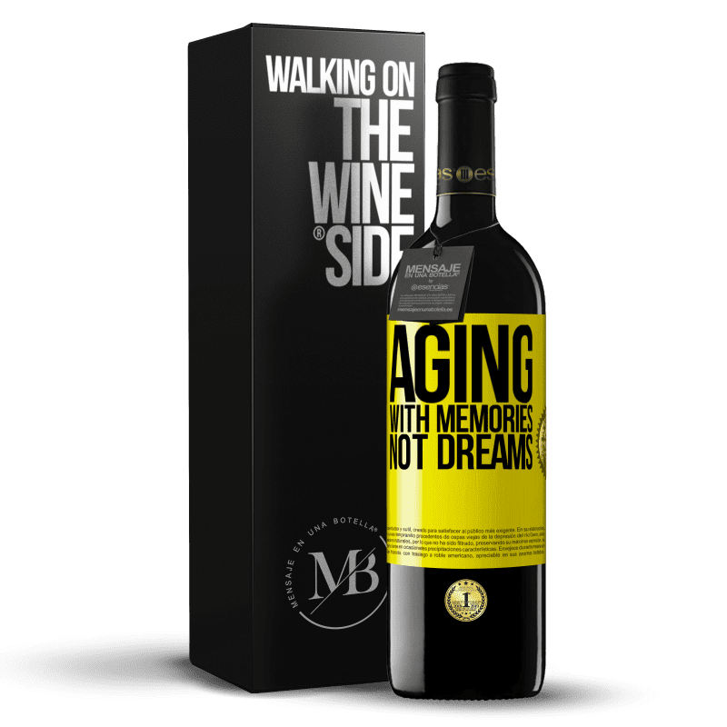 ボトル内のメッセージ. パーソナライズされたラベル付きのワインボトル. メッセージ: "夢ではなく記憶で老化する". 黄色のラベル. カスタマイズ可能なラベル. |