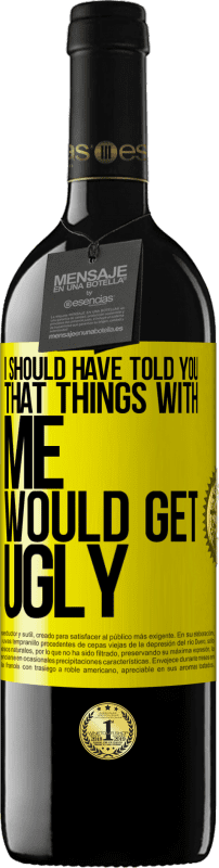 ボトル内のメッセージ. パーソナライズされたラベル付きのワインボトル. メッセージ: "私はあなたと一緒に物事がくなるだろうと言ったはずです". 黄色のラベル. カスタマイズ可能なラベル. |