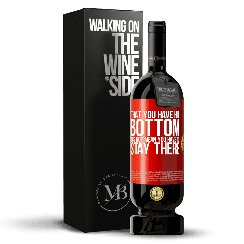 ボトル内のメッセージ. パーソナライズされたラベル付きのワインボトル. メッセージ: "あなたが底を打ったということは、そこにとどまらなければならないという意味ではありません". 赤いタグ. カスタマイズ可能なラベル. |