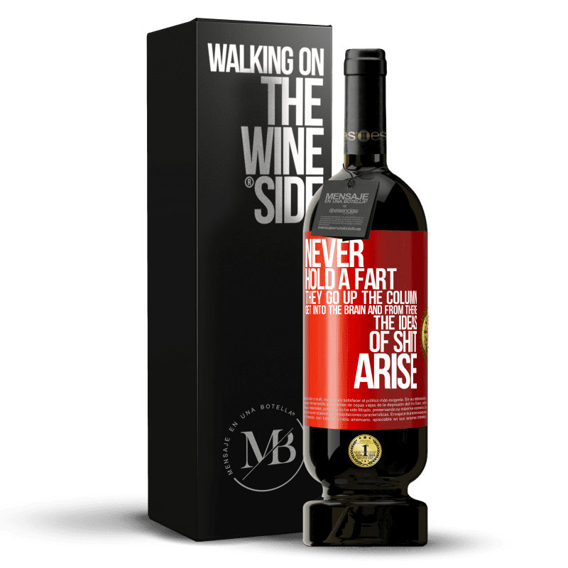 ボトル内のメッセージ. パーソナライズされたラベル付きのワインボトル. メッセージ: "おならを持たないでください。彼らは列を登り、脳に入り、そこからたわごとのアイデアが生まれます". 赤いタグ. カスタマイズ可能なラベル. |