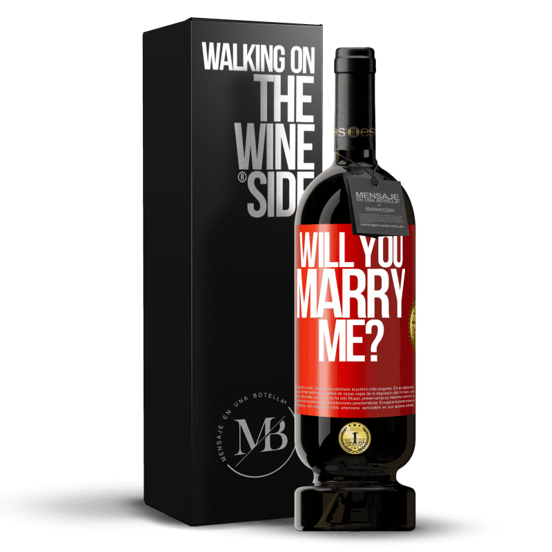 ボトル内のメッセージ. パーソナライズされたラベル付きのワインボトル. メッセージ: "結婚して下さい?". 赤いタグ. カスタマイズ可能なラベル. |