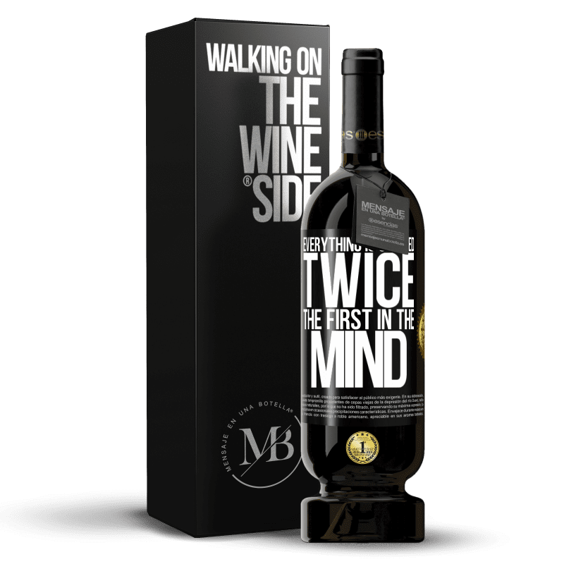 ボトル内のメッセージ. パーソナライズされたラベル付きのワインボトル. メッセージ: "すべてが2回作成されます。最初の心". ブラックラベル. カスタマイズ可能なラベル. |