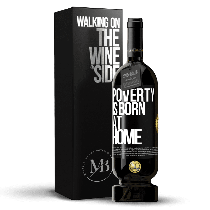 ボトル内のメッセージ. パーソナライズされたラベル付きのワインボトル. メッセージ: "貧困は家庭で生まれる". ブラックラベル. カスタマイズ可能なラベル. |