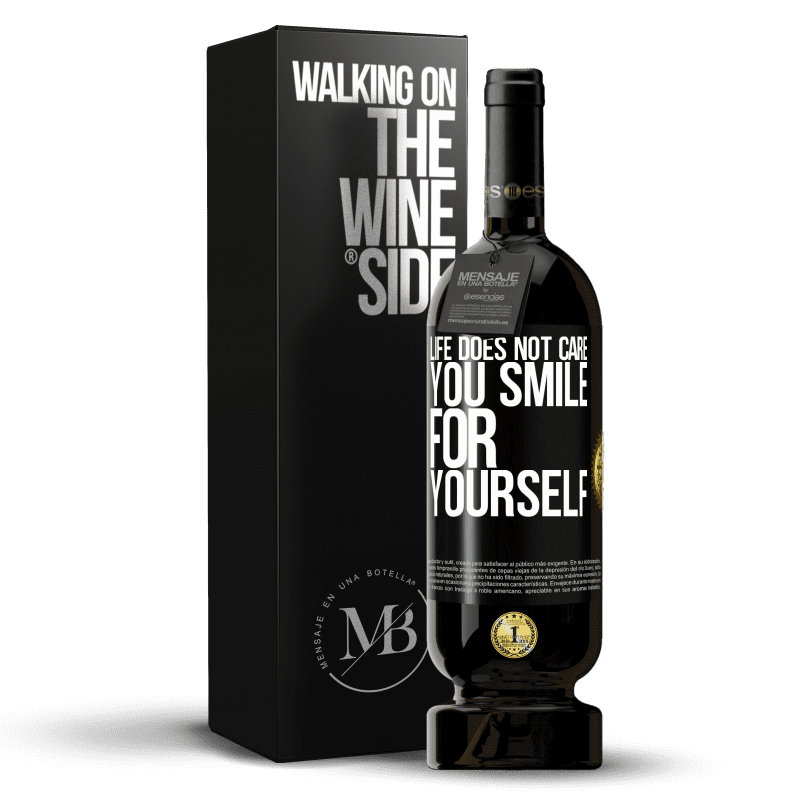 ボトル内のメッセージ. パーソナライズされたラベル付きのワインボトル. メッセージ: "人生は気にしない、あなたは自分のために笑う". ブラックラベル. カスタマイズ可能なラベル. |