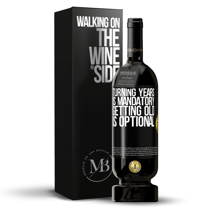 ボトル内のメッセージ. パーソナライズされたラベル付きのワインボトル. メッセージ: "年を変えることは必須であり、年をとることはオプションです". ブラックラベル. カスタマイズ可能なラベル. |