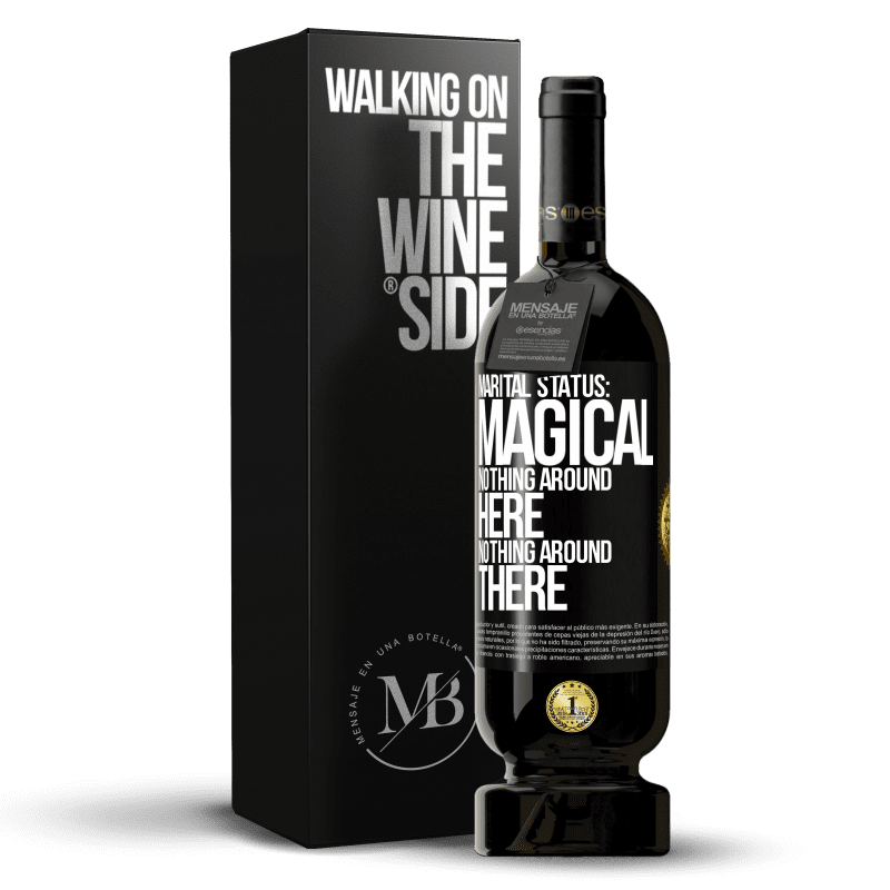 ボトル内のメッセージ. パーソナライズされたラベル付きのワインボトル. メッセージ: "婚姻状況:魔法。この辺りには何もない". ブラックラベル. カスタマイズ可能なラベル. |