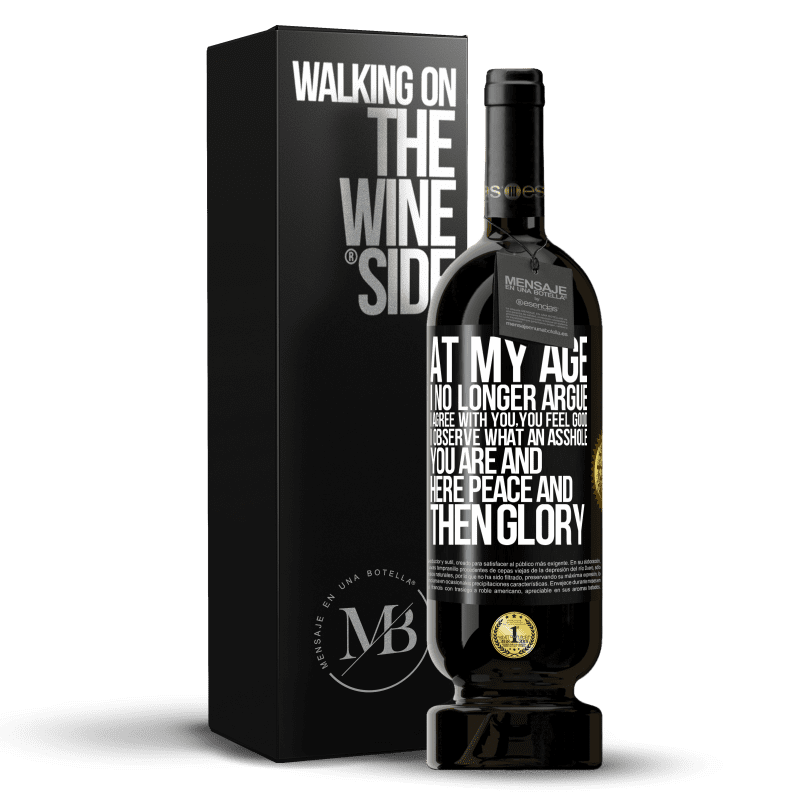 ボトル内のメッセージ. パーソナライズされたラベル付きのワインボトル. メッセージ: "私の年齢で私はもはや主張しません、私はあなたに同意します、あなたは気分が良いです、私はあなたがどんな嫌いな人であるかを観察しますそしてここで平和そして栄光". ブラックラベル. カスタマイズ可能なラベル. |