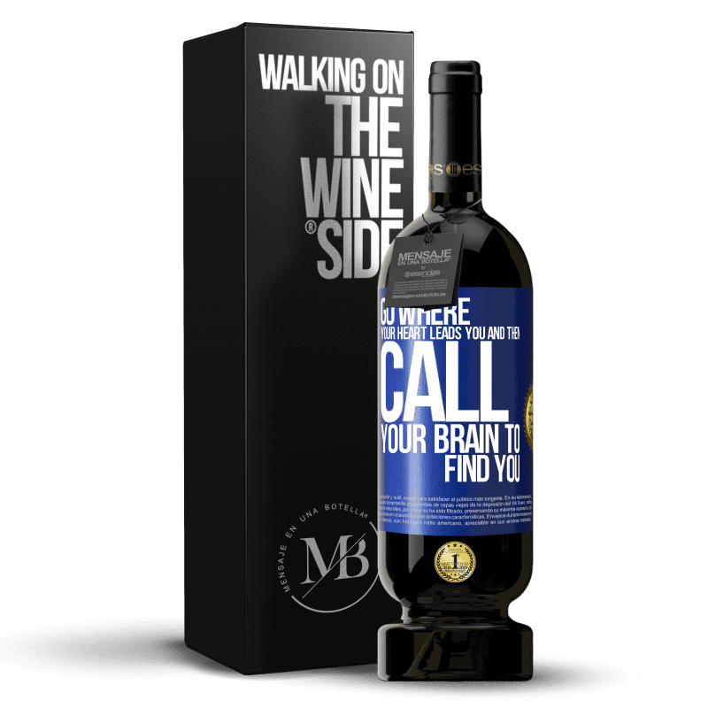 ボトル内のメッセージ. パーソナライズされたラベル付きのワインボトル. メッセージ: "あなたの心があなたを導くところに行き、そしてあなたを見つけるためにあなたの脳を呼んでください". 青いタグ. カスタマイズ可能なラベル. |