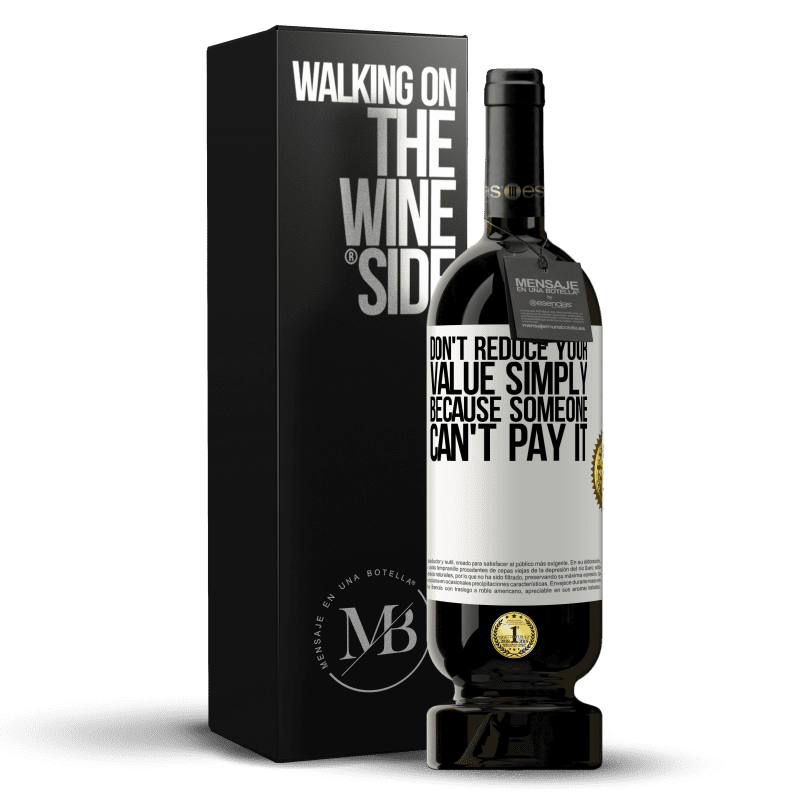 ボトル内のメッセージ. パーソナライズされたラベル付きのワインボトル. メッセージ: "誰かがそれを支払うことができないという理由だけであなたの価値を下げないでください". ホワイトラベル. カスタマイズ可能なラベル. |