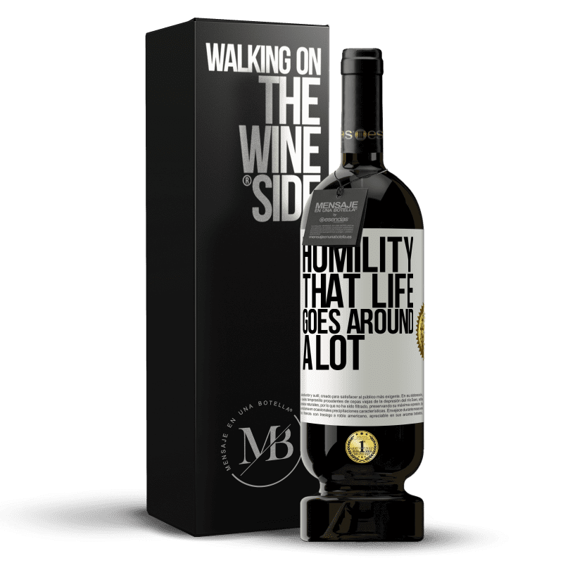 ボトル内のメッセージ. パーソナライズされたラベル付きのワインボトル. メッセージ: "謙虚さ、人生はたくさん回る". ホワイトラベル. カスタマイズ可能なラベル. |