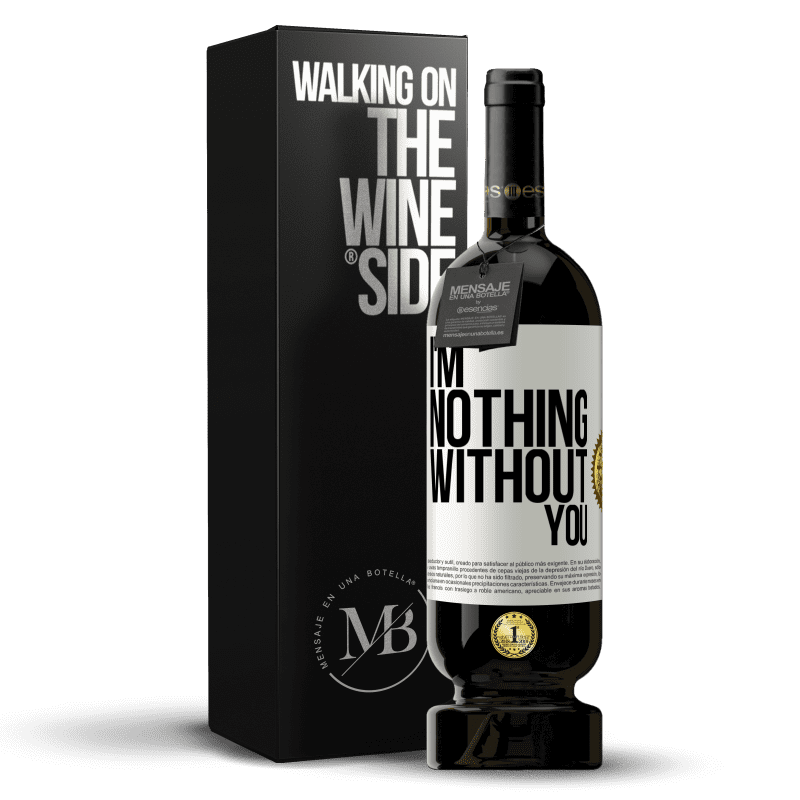 ボトル内のメッセージ. パーソナライズされたラベル付きのワインボトル. メッセージ: "あなたなしでは私は何もない". ホワイトラベル. カスタマイズ可能なラベル. |