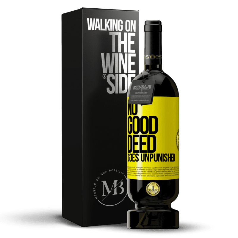 ボトル内のメッセージ. パーソナライズされたラベル付きのワインボトル. メッセージ: "善行は罰せられません". 黄色のラベル. カスタマイズ可能なラベル. |