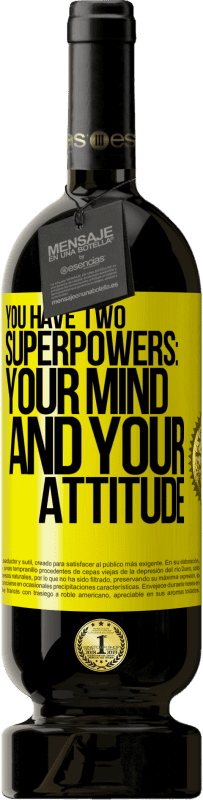 ボトル内のメッセージ. パーソナライズされたラベル付きのワインボトル. メッセージ: "あなたには2つの超大国があります:あなたの心とあなたの態度です". 黄色のラベル. カスタマイズ可能なラベル. |