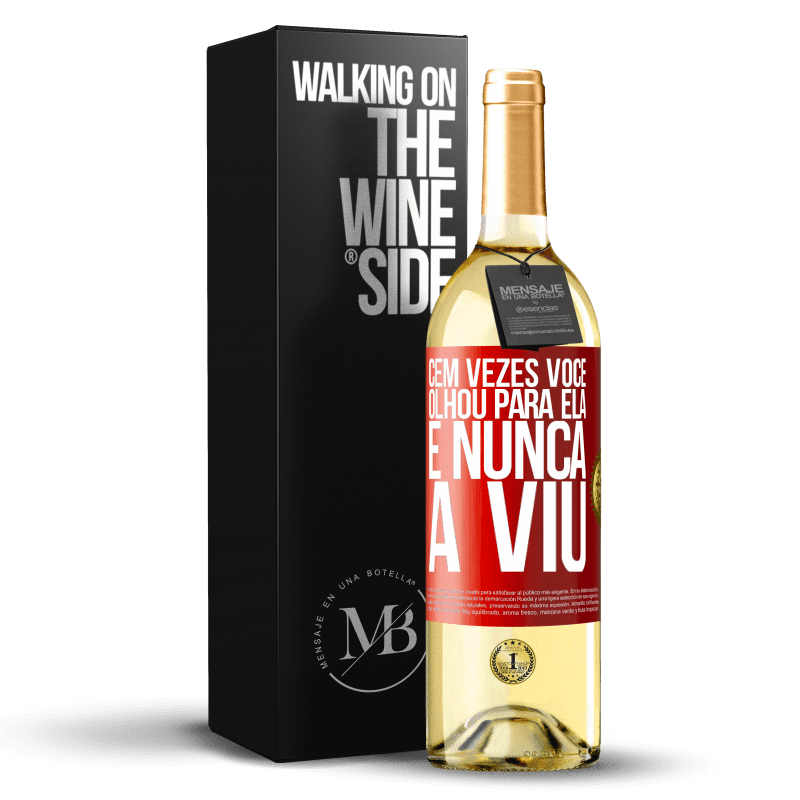 Mensagem em uma Garrafa. Garrafa de vinho com etiqueta personalizada. Mensagem: "Cem vezes você olhou para ela e nunca a viu". Etiqueta Vermelha. Etiqueta personalizável. |