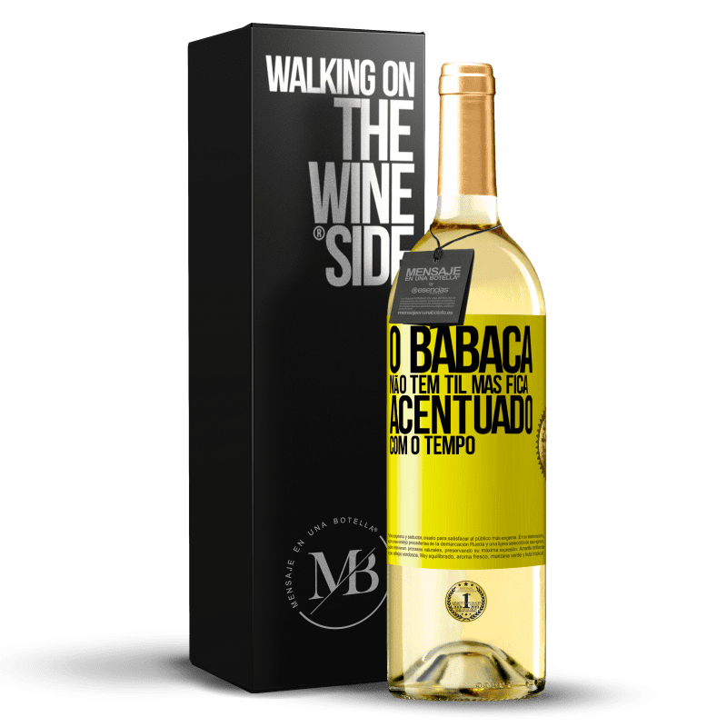 Mensagem em uma Garrafa. Garrafa de vinho com etiqueta personalizada. Mensagem: "O babaca não tem til, mas fica acentuado com o tempo". Etiqueta Amarela. Etiqueta personalizável. |