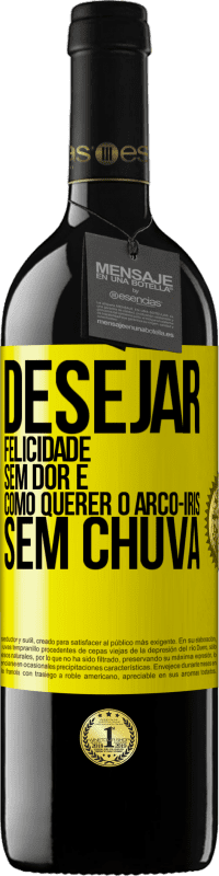 Mensagem em uma Garrafa. Garrafa de vinho com etiqueta personalizada. Mensagem: "Desejar felicidade sem dor é como querer o arco-íris sem chuva". Etiqueta Amarela. Etiqueta personalizável. |