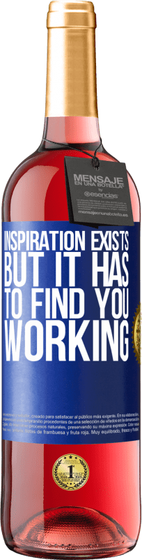 Сообщение в бутылке. Бутылка вина с персонализированной этикеткой. Сообщение: "Вдохновение существует, но оно должно найти вас работающим". Синяя метка. Настраиваемая этикетка. |