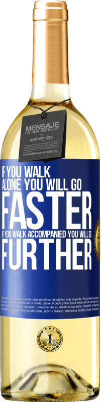 Сообщение в бутылке. Бутылка вина с персонализированной этикеткой. Сообщение: "Если ты пойдешь один, ты пойдешь быстрее. Если вы идете в сопровождении, вы пойдете дальше". Синяя метка. Настраиваемая этикетка. |