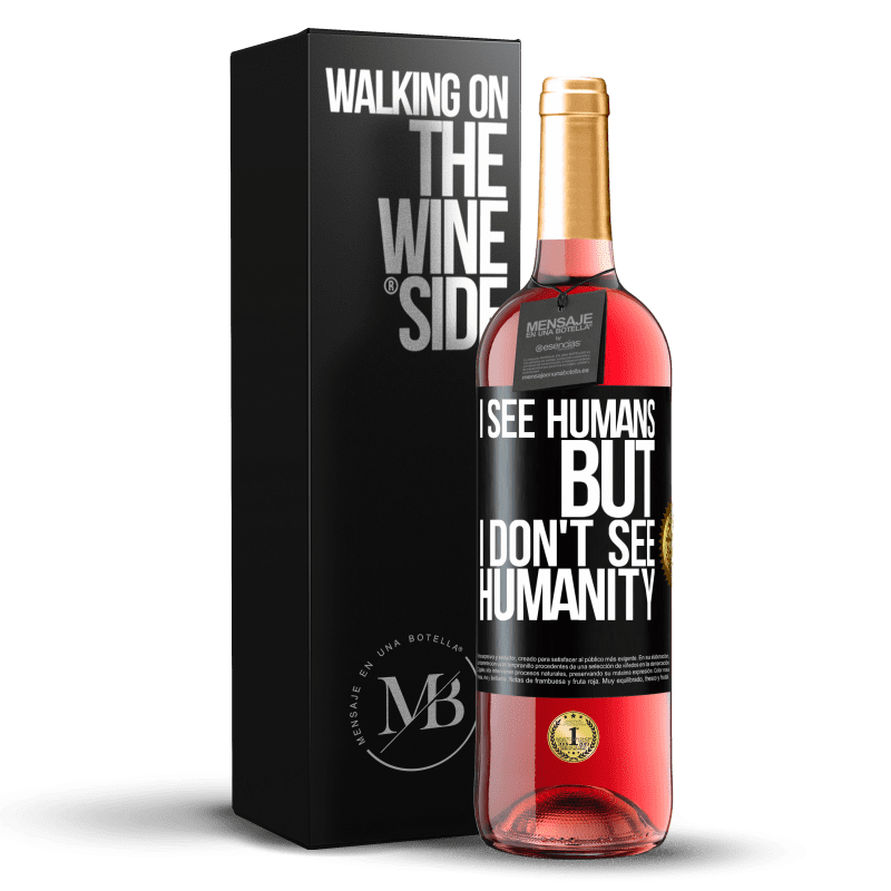 瓶子里的消息. 带有个性化标签的酒瓶. 信息: "我看到人类,但我看不到人类". 黑标. 可自定义的标签. |